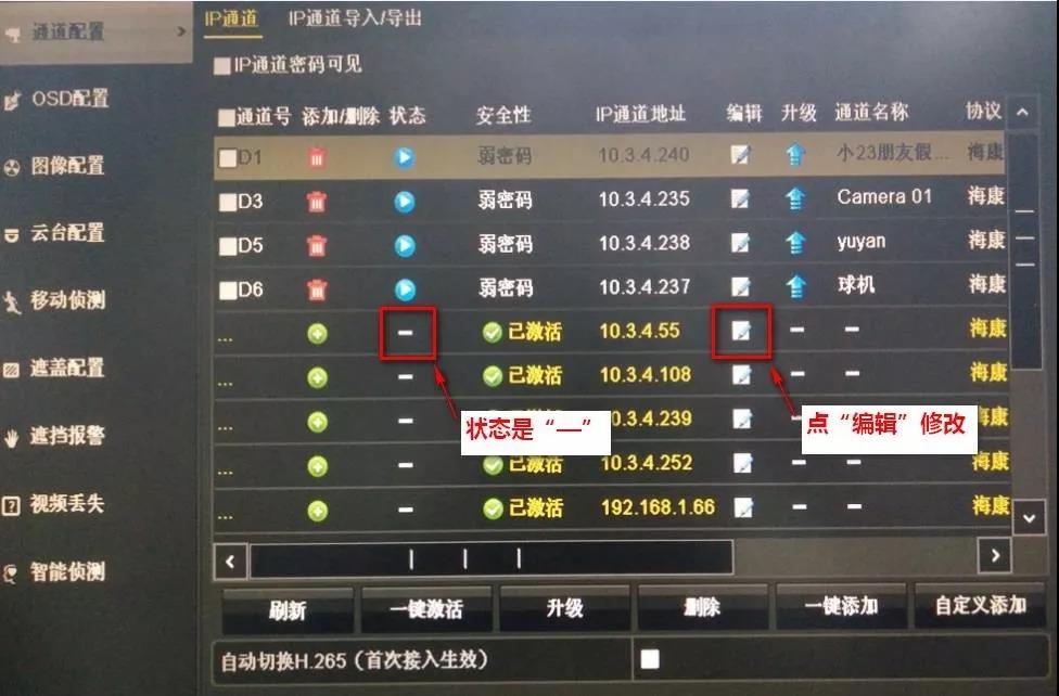 錄像機上個別或者部分攝像機的畫麵顯示“無網絡視頻”,一部分通道顯示網絡不可達,一部分通道正常