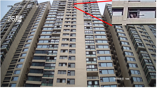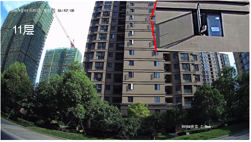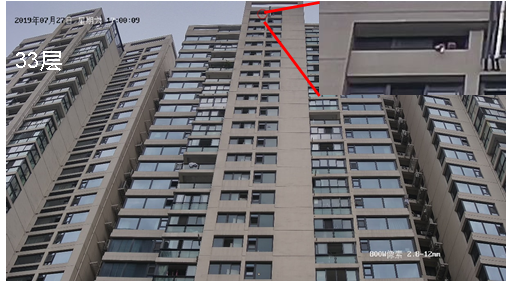 33層和26層拋落物體中白天隻有礦泉水瓶可見,晚上不具備拋物條件未做拋物測試,晚上畫麵中可以辨別人員揮手。針對26層以上高樓無法保證體積太小的物體(如煙盒)白天監控效果,夜間效果無法保證。18層和11層白天拋落物體中三種均可見。18層和11層晚上效果中,18層立杆距離15米和20米兩種,礦泉水瓶可見,煙盒和記號筆均不可見。該結論理論上適用於18層立杆30米及11層的各種組合夜間情況。