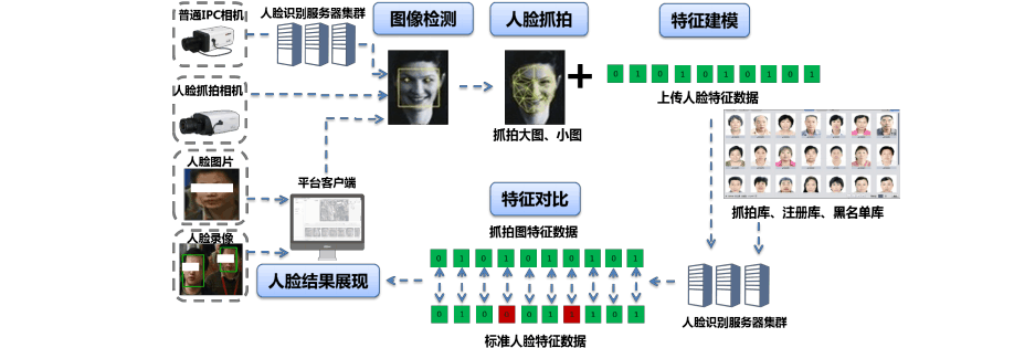 實時布控預警場景-後端通過布控黑名單,對前端攝像機傳輸的圖像信息進行比對預警。非標人臉采集場景-人臉識別係統對實時圖像進行人臉抓拍,並與身份證人臉進行比對,確認是同一個人的情況下,進行抓拍圖片和身份信息關聯入庫。