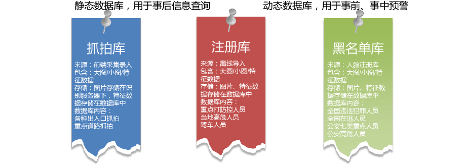 黑名單庫-包含高危人員、特殊人員的人臉圖片、結構化的人臉特征數據和人員身份信息,主要的應用場景是在各個人臉卡口進行實時人流的人臉比對預警。一般來說人臉抓拍庫和人臉注冊庫做為靜態庫,適用於事後查詢檢索目標、黑