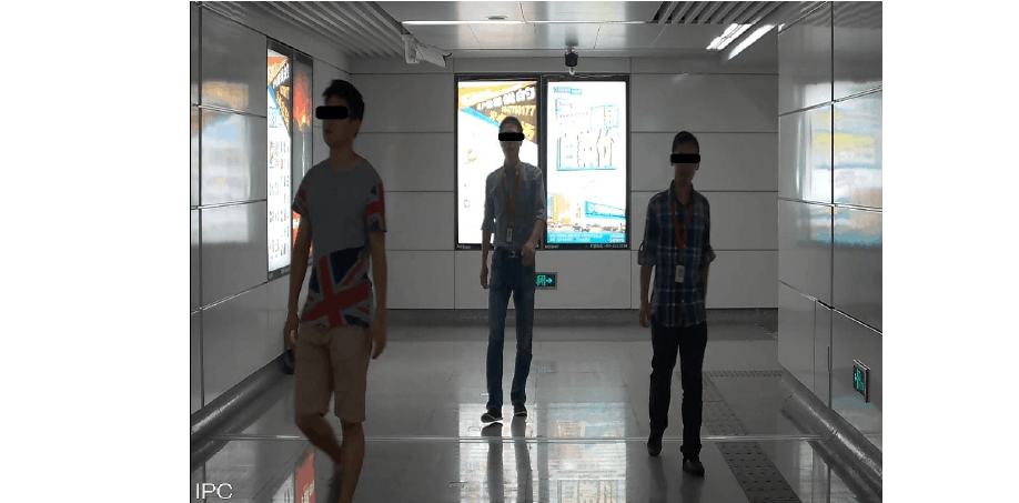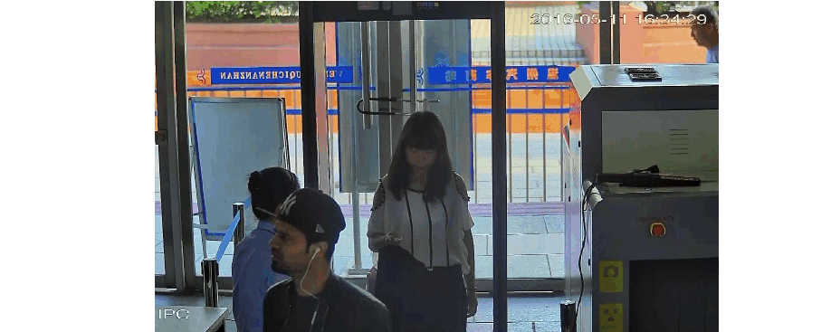 (抓拍人臉監控場景示例圖) 不推薦場景:背景背光嚴重,安檢通道直接設置在進門口,形成強寬動態場景,此場景人臉抓拍效果較差(每天不同時間段光線變化明顯,抓拍效果也有較大差別):