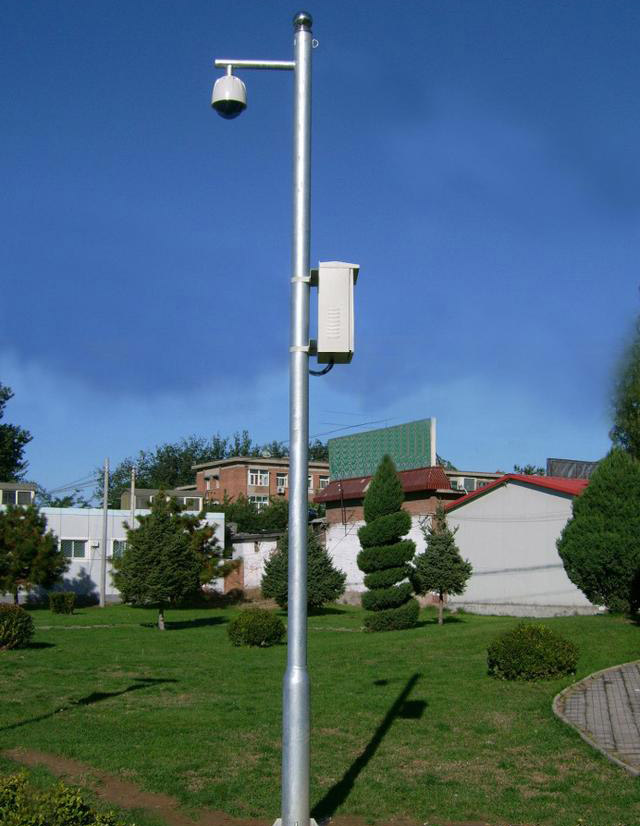 槍機和半球並不難,這裏主要講一講球機的安裝方法,安裝球機一般都是安裝在立杆上,如上圖,在圖上這種環境需要在地上挖一個坑把地籠埋下去,然後用水泥凝固留下一個頭出來,夠擰螺絲就行了,這是第一步準備工作。