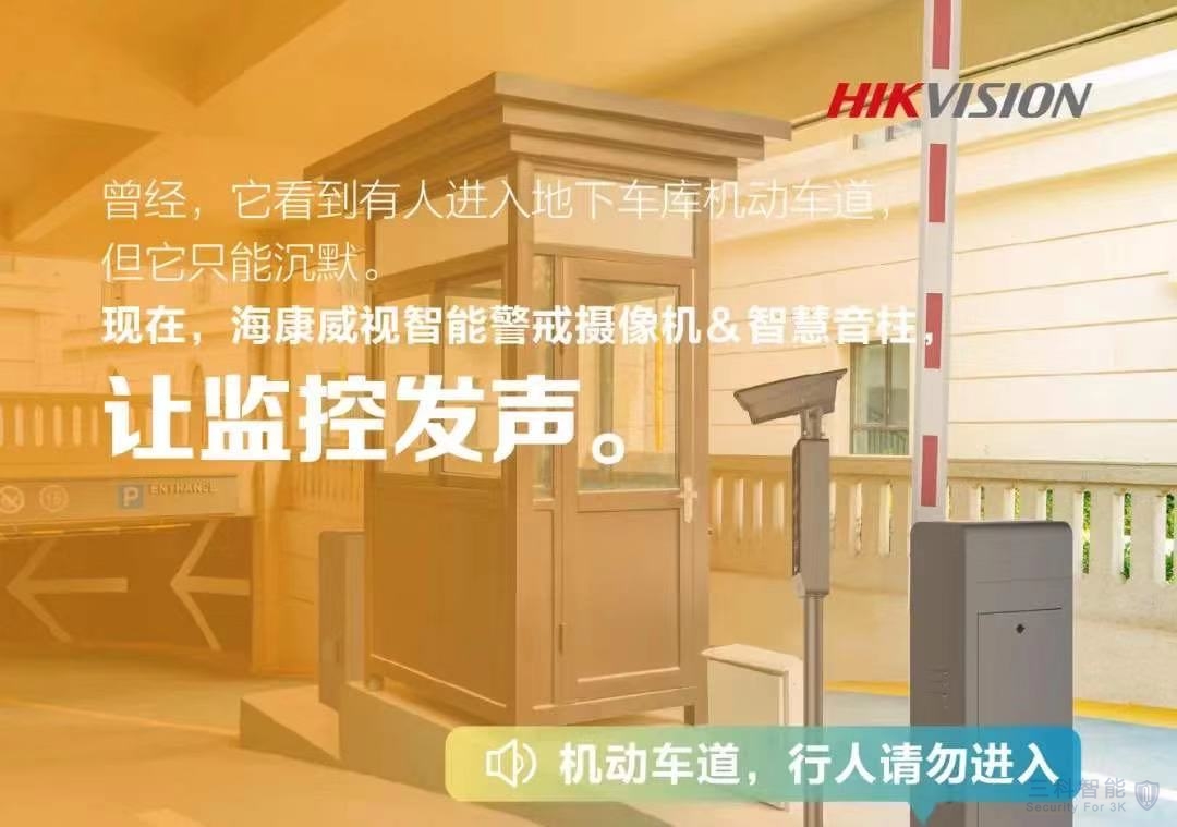 在小區地下車庫車輛出入口安裝海康威視智能警戒攝像機,聲光報警,提醒居民遠離,減少危險發生。