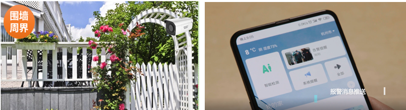 部署全彩智能警戒監控攝像頭,當有可疑人員攀爬圍牆周界時,語音提醒“警戒區域,盡快離開”,並將可視化報警消息推送給別墅業主,便於業主采取相應保障措施。